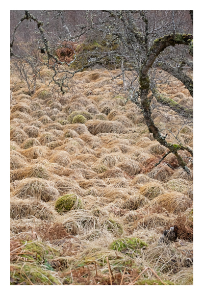 Once into the wood I was able to wander at will across the tufty grassland and among the stands of trees and shrubs.